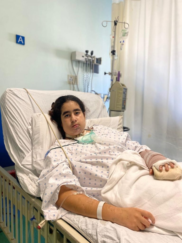 After surviving an airstrike that took the lives of several family members, Zahraa received critical hospital care and specialist follow-up. Today, she has fully recovered and returned to school.